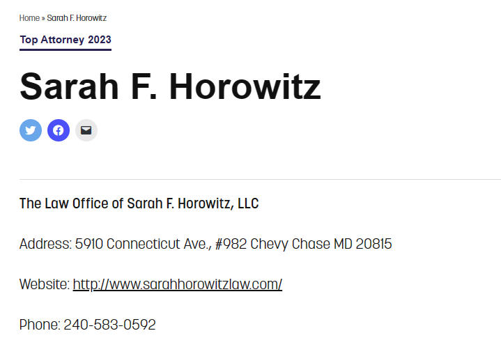 Sarah Horowitz recently was named a Top Attorney in Montgomery County by Bethesda Magazine in the area of Adoption.